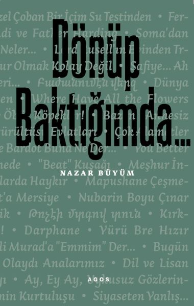 Kültür dünyamızın önemli isimlerinden Nazar Büyüm'ün Nisan 2014'te başlattığı, Aralık 2015'te ara verdiği Agos yazıları, Dönüp Baktığımda başlığını taşıyor. Büyüm'ün hayatına dönüp baktığı bu yazılar, bir yandan kendisinin 1960'ların başlarından itibaren merkez noktalarında yer aldığı kültür, sanat, edebiyat ve yayıncılık dünyasından eşi bulunmaz tanıklıklar, portreler, galeriler sunuyor, bir yandan da Kayseri-Develi'de başlayan, İstanbul'da süren bu hayatın bir Ermeni gencinde, bir Ermeni ailesinde bıraktığı izleri, öğretici, aydınlatıcı satırlarla canlandırıyor.